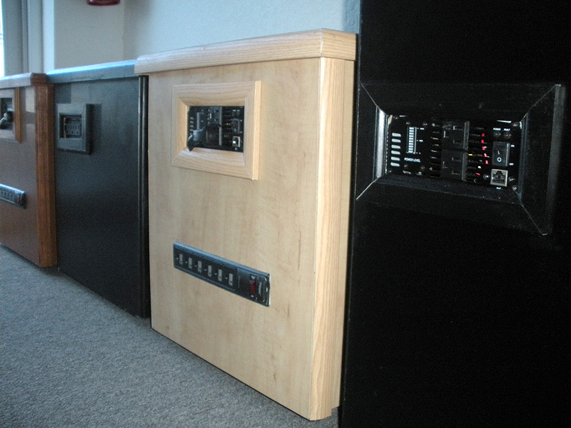 Colors: White/ Black/ 4 Wood Grains Maple, Cherry, Oak, Mahogany or Custom Colors. Features: iplug allows for simple installation and hot swappable battery use. Portable on wheels. Manufactured in durable easy to clean materials. Power Status Display & Low Battery Alarm.
